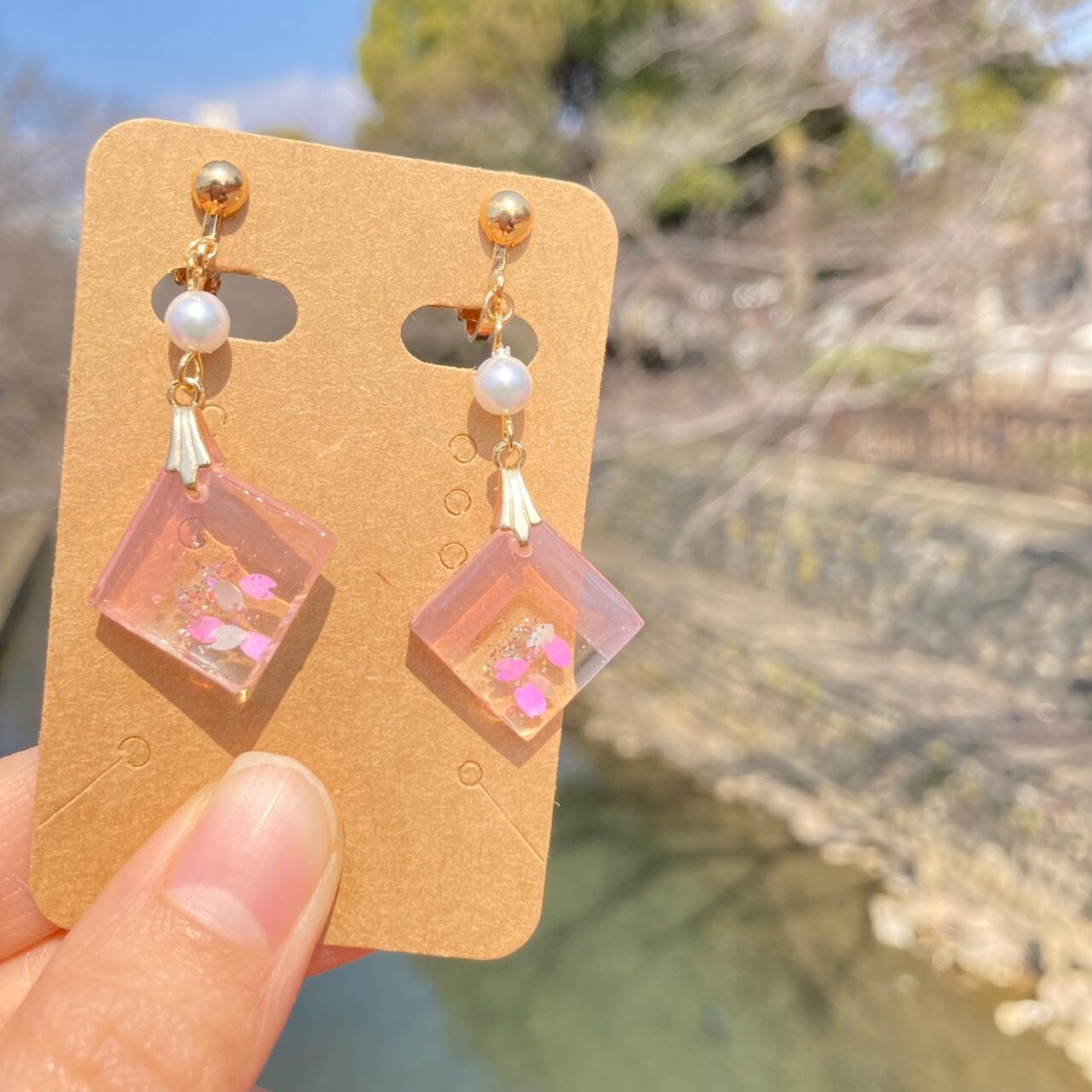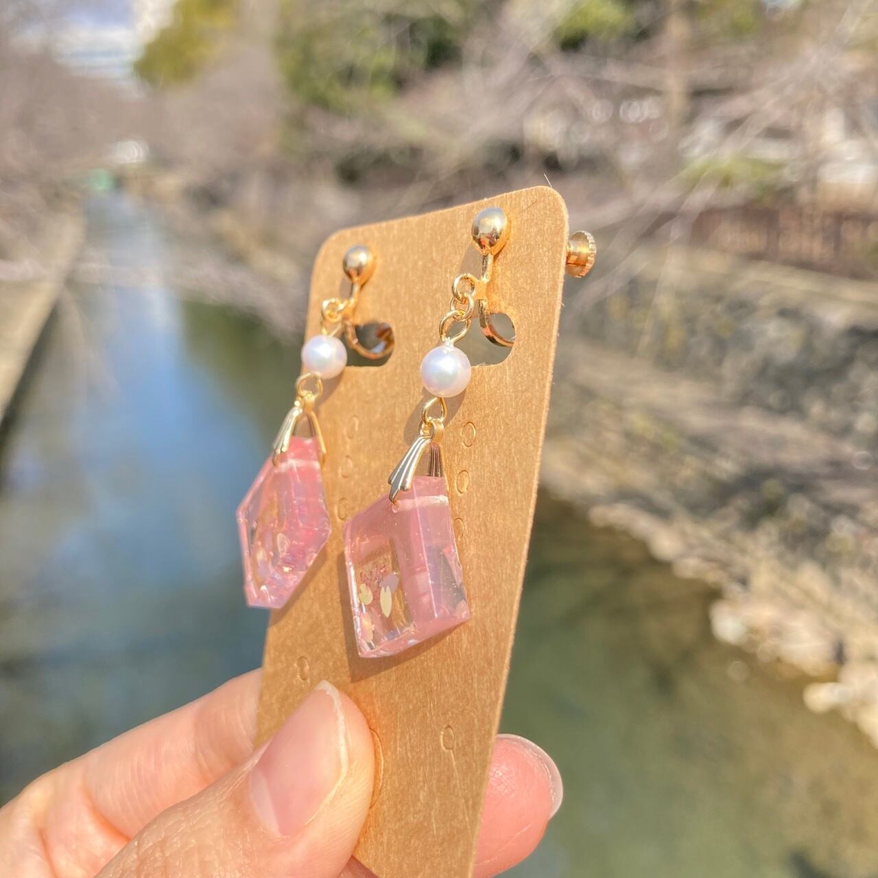 「岐阜の桜詩が耳元に咲く!ピンクレジンイヤリング♡」